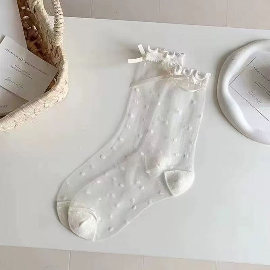 Ice Silk Breathable Socks with Polka Dot Design